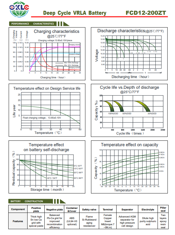 200 Ah 12v KLE-FCD-200AGM AGM Deep Cycle Battery