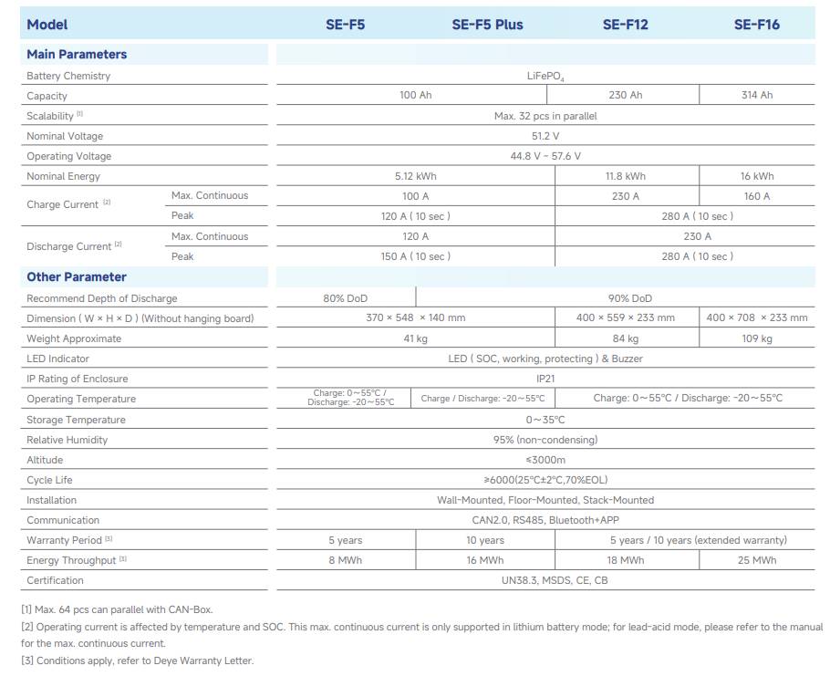 Deye SE-F5 5.12KWH 51.2V 100AH