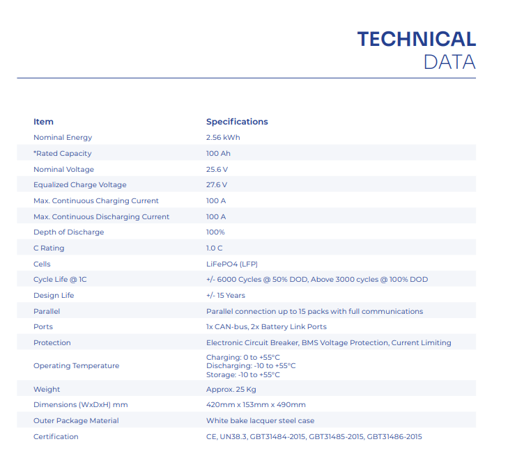 *Rated Capacity 100 Ah