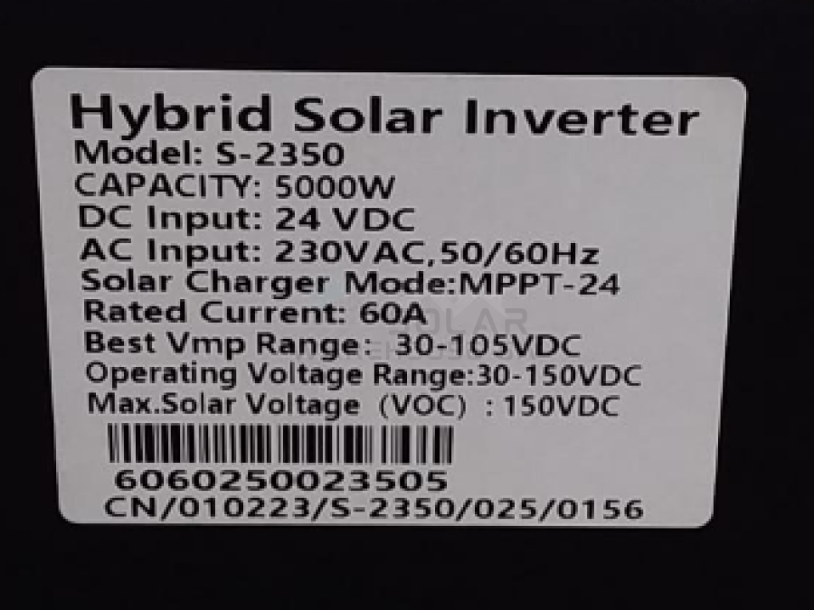 Hybrid Inverter 5KVA 5000W MPPT 24V -Sun Solar S-2350 German Tech (DEMO PRODUCT)