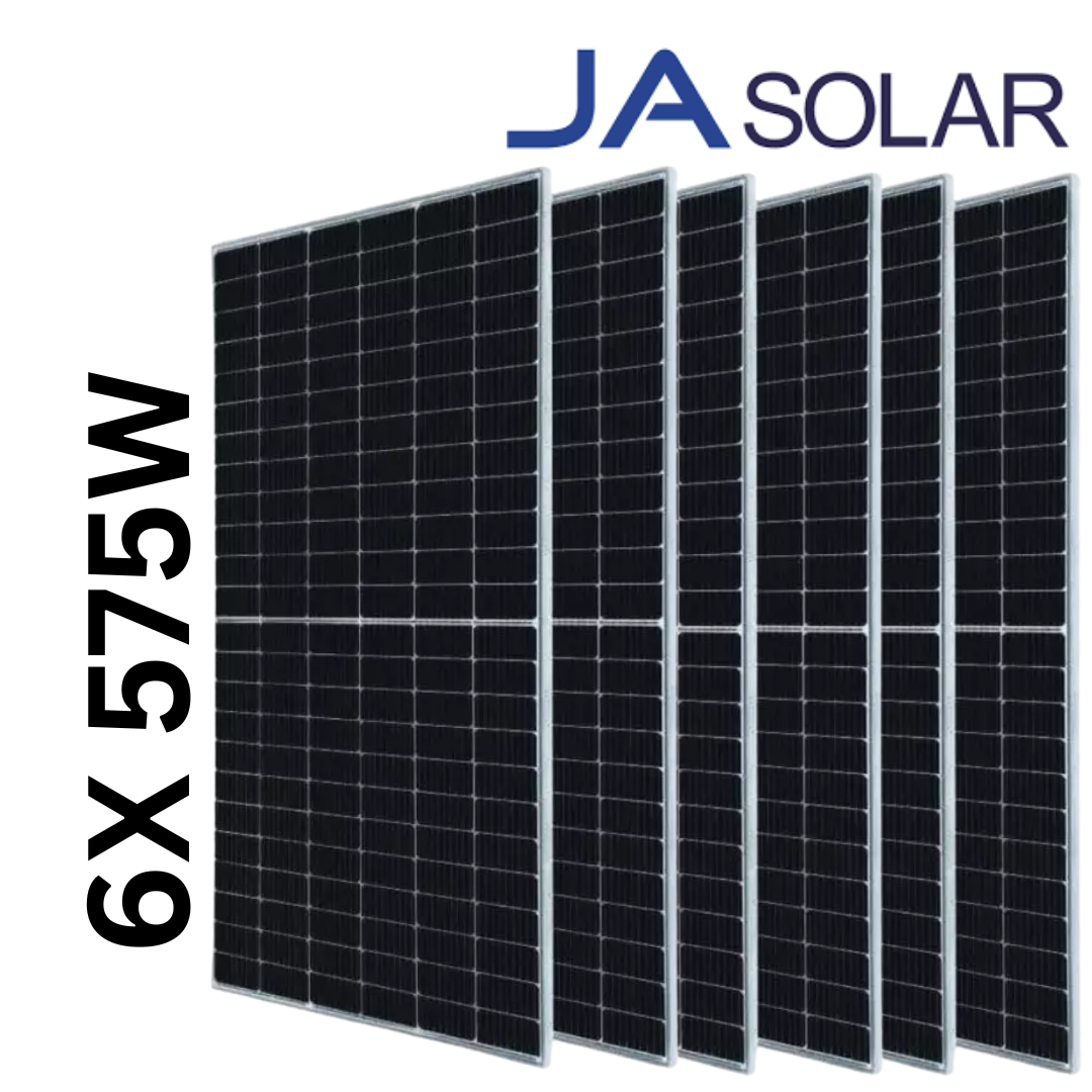 6X JA 575W Tier 1 Bifacial Mono Solar Panel (JAM66D42-575/MB)